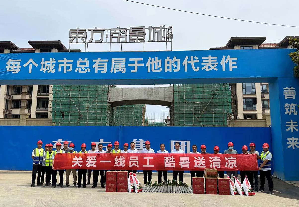 活動(dòng)現(xiàn)場(chǎng),婁總一行將綠豆、冰糖、純凈水、藿香正氣水、冰糕票等防暑物品送到各項(xiàng)目人員手上,婁總強(qiáng)調(diào),進(jìn)入6月以來(lái),時(shí)間緊,任務(wù)重,全體職工要以高度的責(zé)任心堅(jiān)守崗位,戰(zhàn)酷暑、保交期,全力以赴保證各項(xiàng)目如期交付;并叮囑施工工人勞逸結(jié)合,根據(jù)夏季高溫特點(diǎn),合理避開高溫時(shí)段,做好防暑降溫安全措施方案,防止中暑,讓一線工人感受到在炎炎夏日里的一片“清涼”。