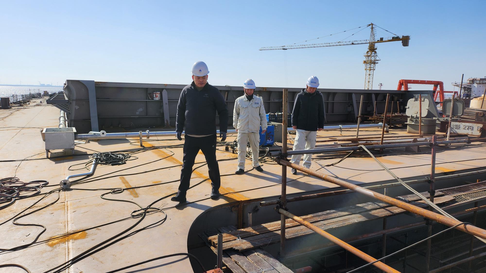 12月17日,集團(tuán)總經(jīng)理劉磊一行前往位于江蘇南通的啟東集勝造船廠,查看集團(tuán)公司訂造的52500噸沿海散貨船進(jìn)展情況。